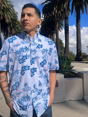 Repping your favorite team has never looked so cool! Our all-new line up of MLB® performance button front shirts will have you looking great.   Performance Fabric: 92% Nylon, 8% Spandex.  Cut with a little extra room through the chest and body. Button-down collar Print-matched left chest pocket. Four-way stretch. Moisture wicking and quick-dry technology. UPF 50 sun protection. Machine wash cold without fabric softener, tumble dry low or line dry.