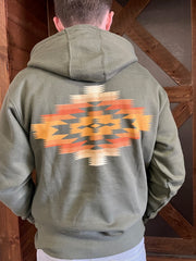 A hoodie featuring a classic Pendleton graphic pattern on the back, with a small logo on the front left chest.