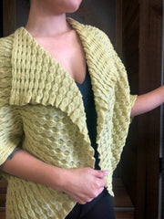 Beyond Threads - The Spontini Shrug features a unique accordion-like texture that has a lot of stretch.  Plus, the knit is so lightweight and breathable that it is wearable year round. Yes, even in the warmer months!