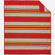 While the serape is now part of both Spanish and Native American textiles, it has roots in the Mexican weaving tradition.  The serape is woven of fine yarns that allow it to be lighter in weight than other blankets, with unbalanced stripes of varying widths.  Pendleton's version stays true to this classic and histroic style.