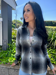 AA long-sleeve women’s shirt made from Pendleton's  own Umatilla® wool, a midweight weave with a flannel-like hand. Warm, but not heavy, it’s wrinkle-resistant and machine washable. Pattern-matched chest pocket, button cuffs, curved hem with side slits. Classic fit.