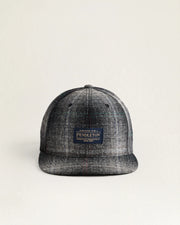 A classic flat brim cap crafted of our own woven-in-USA wool 32659 (Fall 2024) with fabric patch on front. Coordinates with Original Board Shirt too!! 6 panels, hard interfacing, snap back closure, body and visor top 100% wool. Visor bottom 100% cotton Spot clean