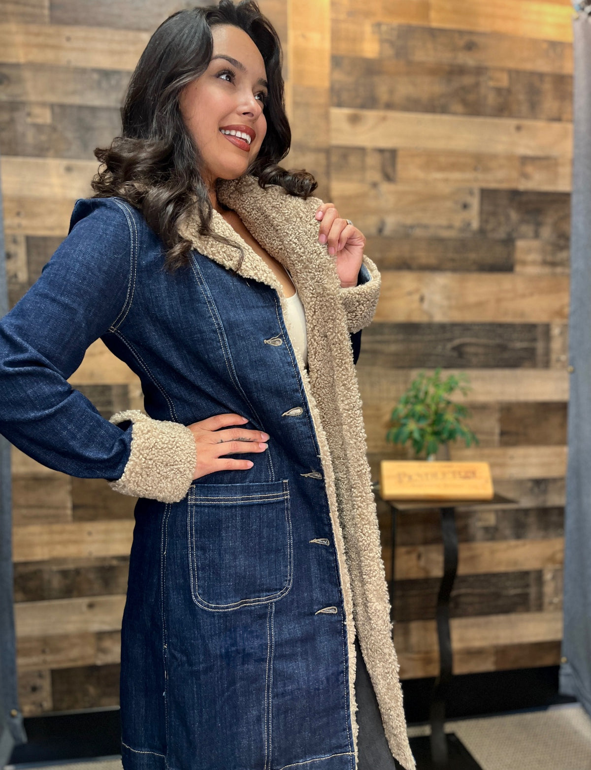 Sherpa Trimmed Trucker Denim
