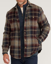Worn alone or layered, this snap-closure men's wool shirt offers outstanding details in substantial 7.4-oz Oregon Tweed® woven in the Pacific Northwest mills. It features two snap-close chest pockets, two welt pockets, and contrast solid fabric lining the neck, collar and placket.