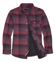 WADE’s brawny cotton flannel shell and 200 GSM  artic fleece interior are bonded to create two plies of warmth in our heaviest shirt jacket .