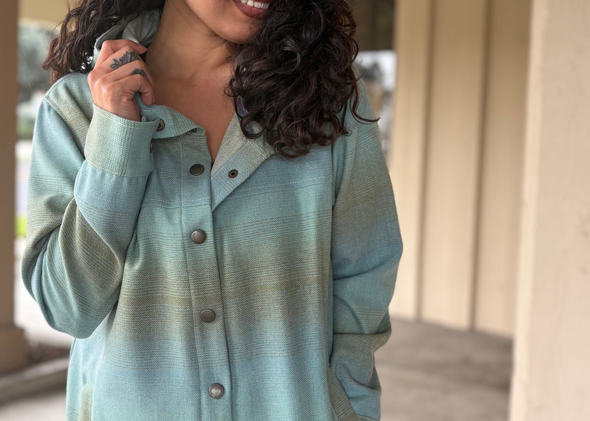 Back by popular demand, this lightweight wool layer provides serious warmth and casual style. This women's hoodie is woven from pure virgin wool in our Pacific Northwest mills, featuring an ombré jacquard pattern and laid-back style. This stylish hoodie features a snap front, layback hood, and front pockets add function, while the natural properties of wool—odor resistance, insulation, and breathability—make this a timeless choice for layering.