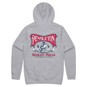 A hoodie featuring a classic Pendleton graphic pattern on the back, with a small logo on the front left chest.